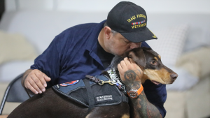 Featured is veteran Tommy Aldridge and his service dog, Chip. Tommy, a combat veteran of Operation Iraqi Freedom, lives with PTSD. During the training session captured in the interview, Chip begins to show subtle changes in behavior, something our trainers immediately recognize. He’s alerting to early signs of rising anxiety. With guidance, Tommy pauses, checks in with himself, and uses the moment to regain control.